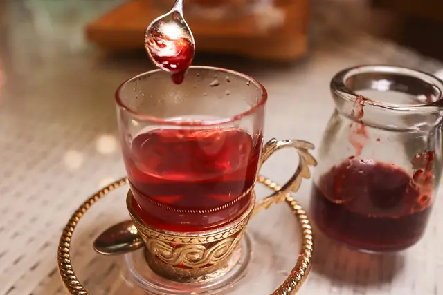 旁邊搭配的是店家自家做的草莓果醬,可以自行添加入花果茶中