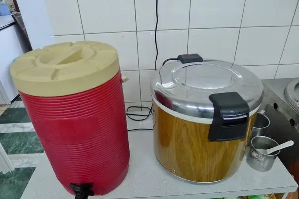 拉開塑膠門.裡面擺放著的白飯.湯.飲料.通通無限享用