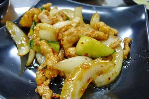 酸酸辣辣有甚麼了不起呢?最了不起的是洋蔥和小黃瓜的加入.炒出洋蔥的甜味來
