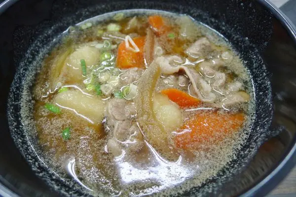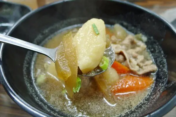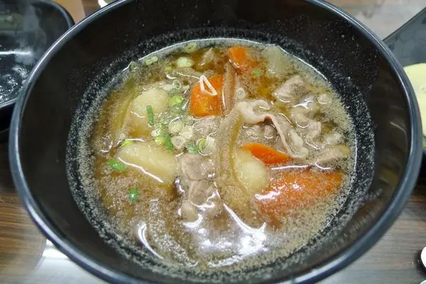 底下馬鈴薯燉肉的湯汁.看似油膩膩汙濁.其實是豬肉片的油質.看似油膩喝起來卻好清爽