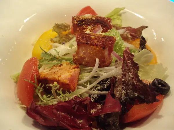 大量新鮮的沙拉配上煎烤過的鮪魚