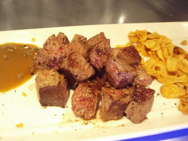 沾點玫瑰鹽就可突顯出牛排本身的肉質和甜度