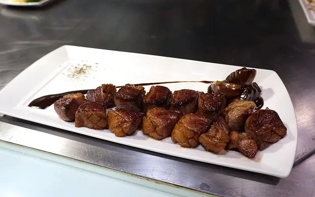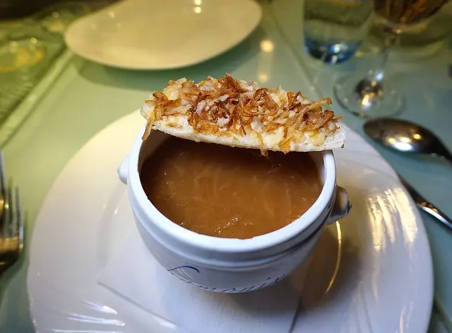 洋蔥炒到焦化口感入口即化,洋蔥香氣遠遠飄香而來,味道中規中矩但有點過焦有些苦味。