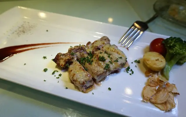 肉汁都封鎖在肉中,單吃加點海研究非常美味了~另外一旁還有可可醬與蜜蘋果,這可是情人限定套餐才有的料理,