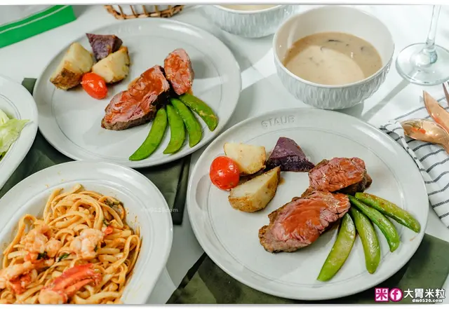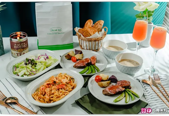 米粒拿出我的史大伯松露白餐盤,將餐點依序擺好後,是不是立馬像在餐廳內用的精緻感,雖然大家在家防疫不能外出,還是能享受簡單生活儀式感!若是六月有生日壽星想要慶祝或情侶約會,外帶外送就能在家大啖浪漫牛排餐!