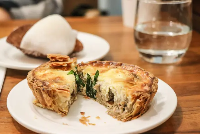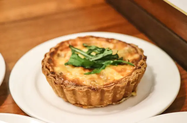 鹹派剛入口我是有點失望的,我期待塔皮可以再酥脆一點,但豐滿哥非常喜歡直誇好吃,不斷說我太挑嘴。雖然塔皮沒有想像中的酥,但這個口味很耐吃,越吃又越喜歡了(善變的女子),濃郁的牛肝菌香味配上濃濃的奶醬與菇類,底層帶點微焦香的塔皮,還是挺滿足的。