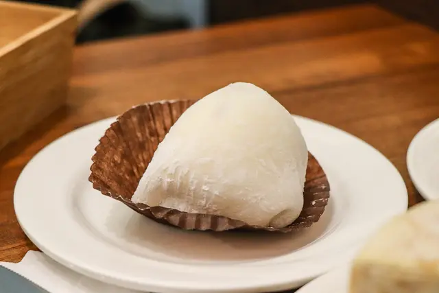 今天買的$150想必就是日本進口的熊本小雪草莓大福,日本傳統和菓子「大福」包的是紅豆餡,法朋充填的則是西式乳酪蛋糕與卡士達醬。