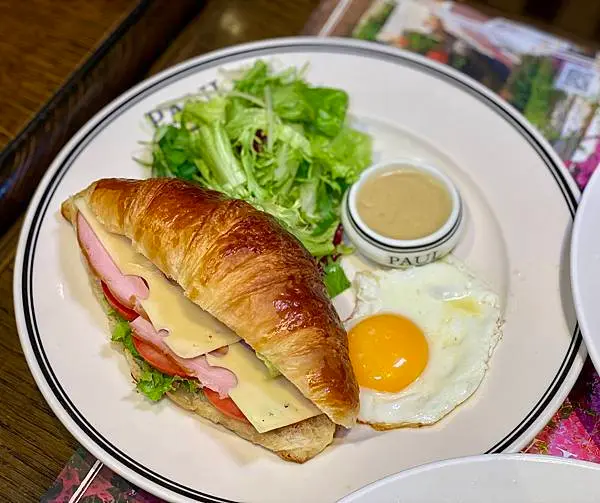 中間夾著滿滿的巴黎火腿、起司、生菜,