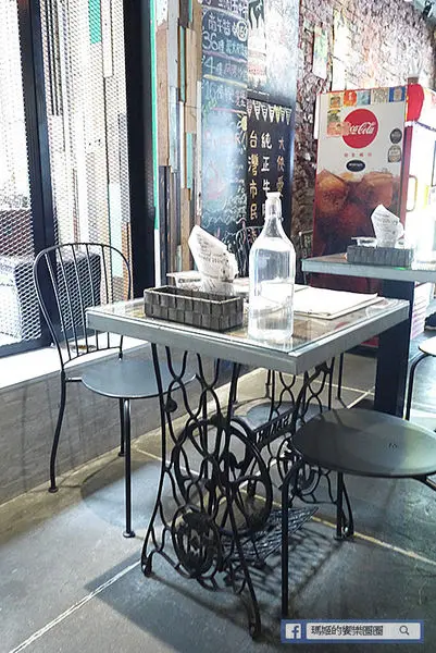 特別注意到他們家的餐桌,是用舊式裁縫車的底座,感覺上來這裡的客人都會慣性的踩二下才過癮。