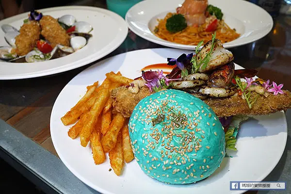 和家人二訪大安美式餐廳【黑熊愛跳舞】,位在捷運六張犂附近的美式餐廳,同時也是餐酒館,老闆是位很愛交朋友阿沙力的人,才會開這間店來廣結善緣。聽說他們這次推出了藍色海洋傳說全系列料理,瑪姬是視覺系美食愛好者,能吸引我目光就會想來試試新菜色啊!