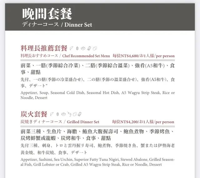 桌席炭火吧台壽司吧台火鍋鐵板燒板前鐵板燒包廂