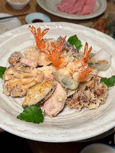 裡頭有炸蝦、炸櫛瓜、炸香菇、炸蕃薯…等,