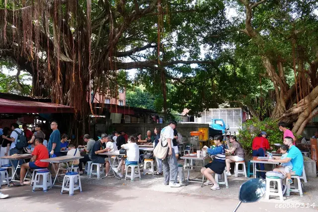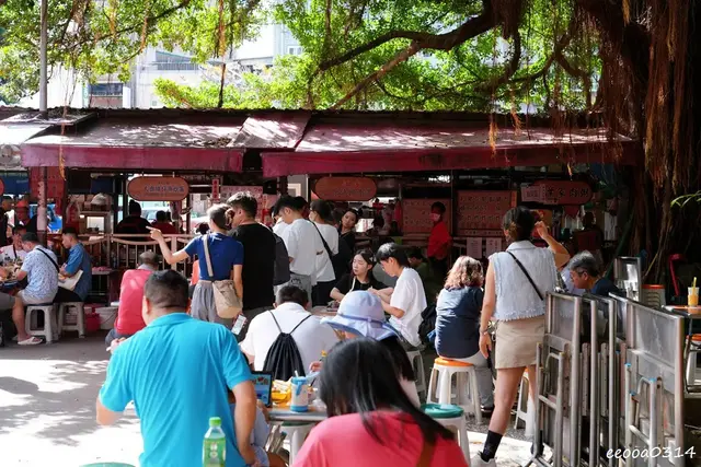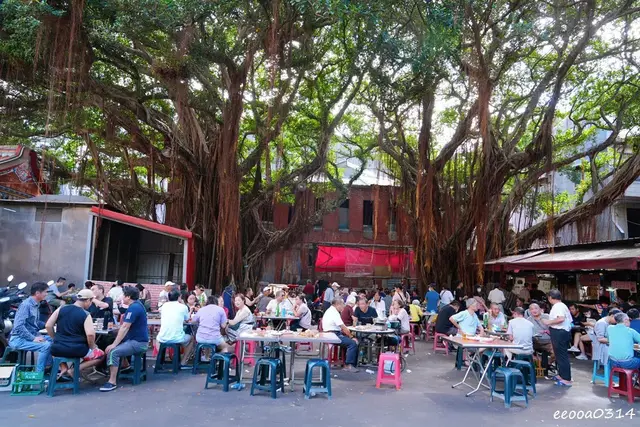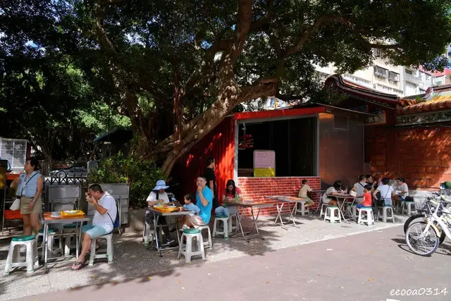 攤位前方只有一張長椅的空間,主要桌位在慈聖宮廟埕廣場,葉家肉粥的桌位也在這裡,不要坐錯了,假日午後來訪雖然已經過了用餐時間但人潮還是很多,需要排隊等待點餐。