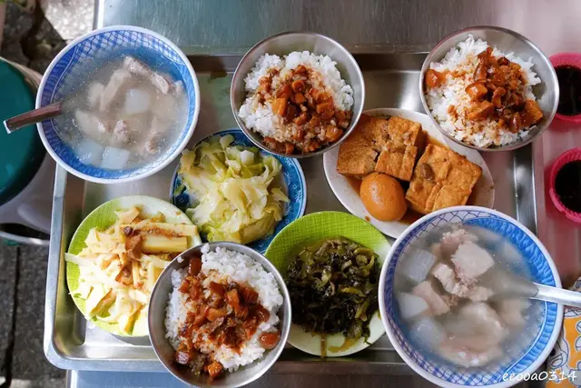 當天哥哥跟同學去學校打球,所以我們是兩大一小來用餐,點了三碗魯肉飯、兩碗原汁排骨湯及一些小菜。
