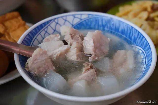 排骨湯內有多塊小排,所以80元的價格也不貴,只是我原先以為是以往吃過那種很長一條的排骨,實際來了後才發現原來是小排,小排口感鮮嫩,蘿蔔燉煮的也軟爛,湯頭很鮮甜。