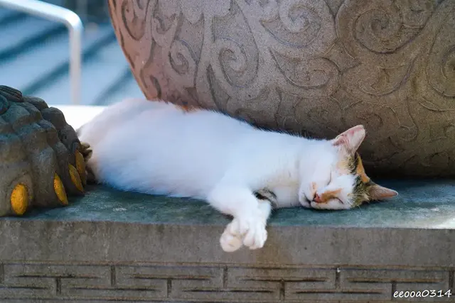 吃飽離開時發現在廟埕角落睡覺的可愛貓咪,看牠睡覺的樣子好愜意啊!吃完江家原汁排骨湯後我們就到迪化街走走逛逛,迪化街好吃好逛好買,很不錯喔!