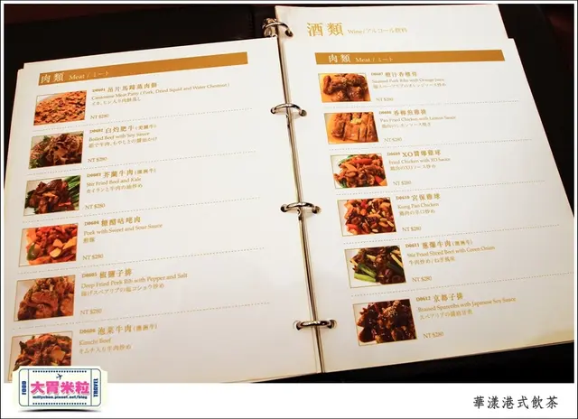 翻開菜單,裡面各種肉類、海鮮菜色相當多樣(線上菜單請點此)