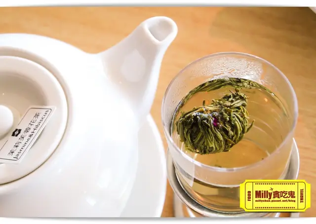 先上桌則是「芙蓉花茶」與「芙蓉茉莉花茶」特殊元寶造型花茶球