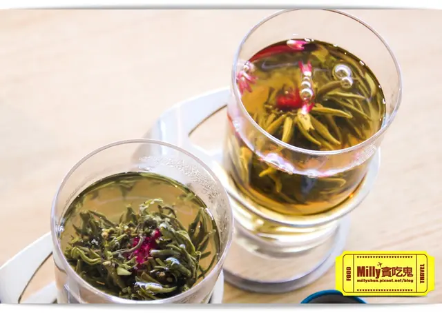 點餐隨後餐廳人員來上一大盤茶葉給我們選擇,