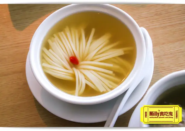 雞蛋豆腐經過師傅巧手刀工細切成絲,加上小火慢燉的老母雞湯底,
