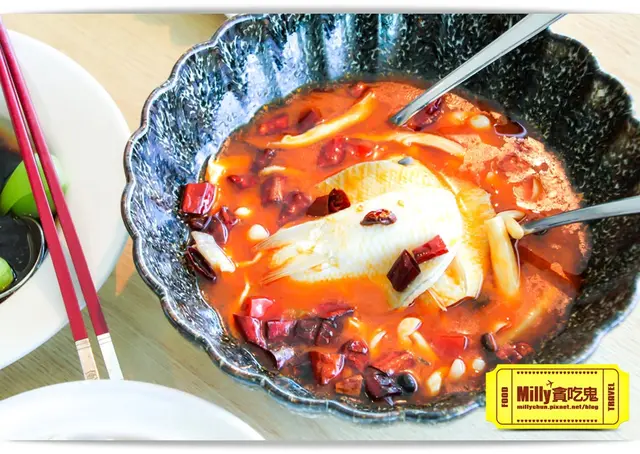 雖然滿滿紅油看起來嚇人,其實辣度香醇卻不嗆口加上泡椒溫和微酸,反而越吃越過癮!