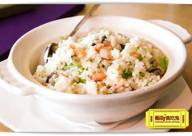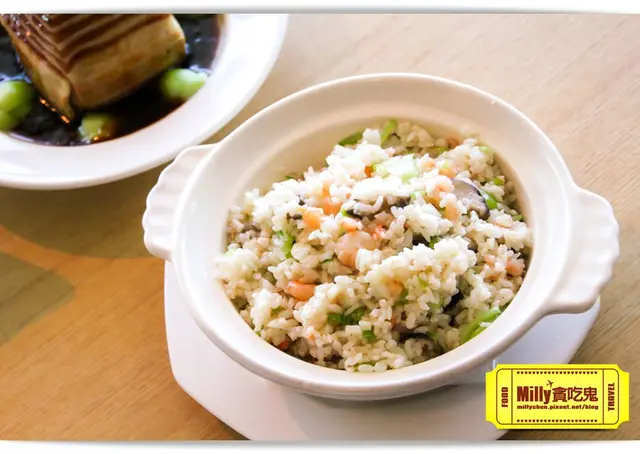 前面幾道菜品都是重口味,因此飯品選了較為清爽「砂鍋上海菜飯」