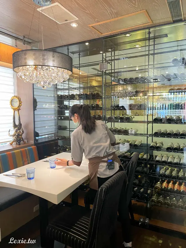 我原以為用餐的年齡層會稍微偏高一點,但當天發現雖然很多年紀偏高的客群,但仍然是有不少年輕人來用餐。上方還有紅酒櫃,因為天下三絕也主打吃牛肉麵配紅酒的頂級享受。