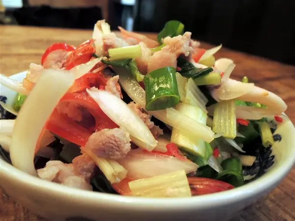 芹菜和蔥段拌上魚露檸檬汁和辣椒
