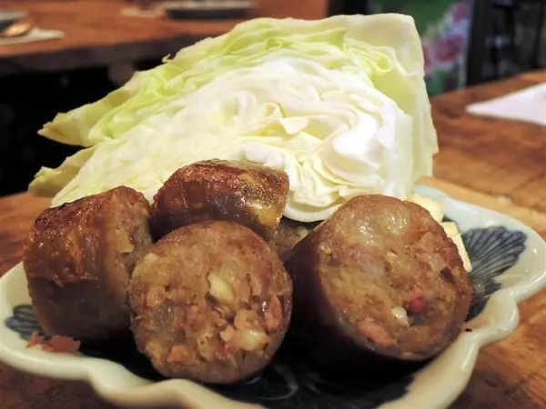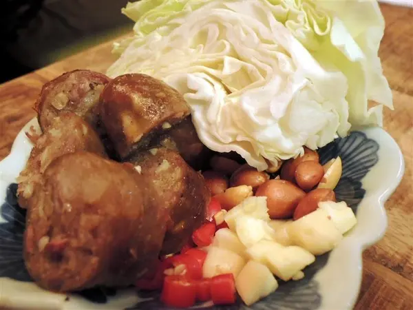 就是辛香料搶著表現自我 高麗菜包起香腸和花生米 蒜頭