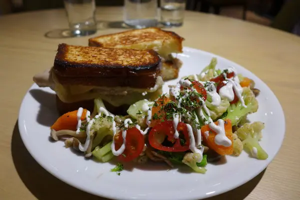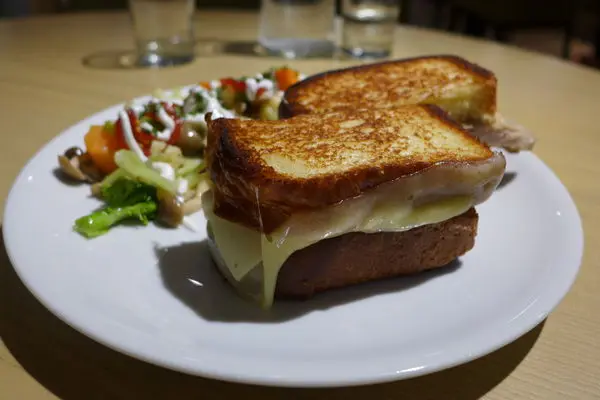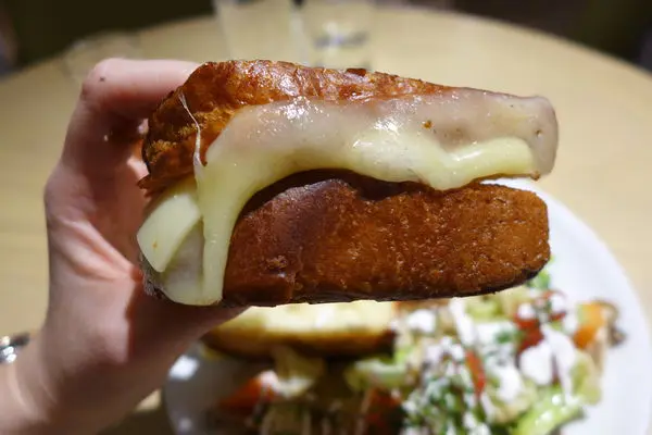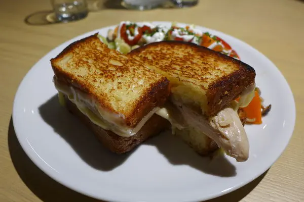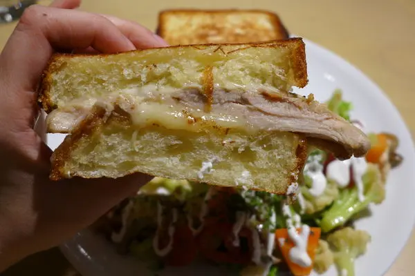 搭配著雙起司的濃和油煎後的鹹香,這三明治可能是有點稍油,