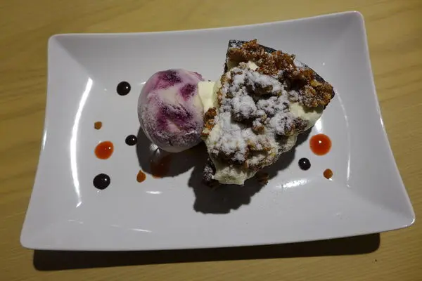 最後再擺上一大球藍莓冰淇淋,擺盤真的是藝術品等級的美啊。