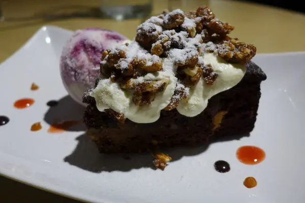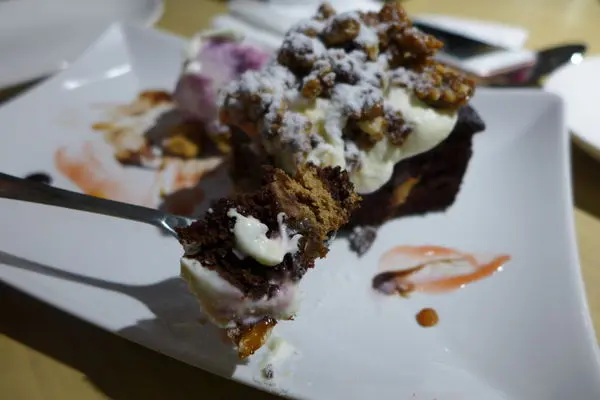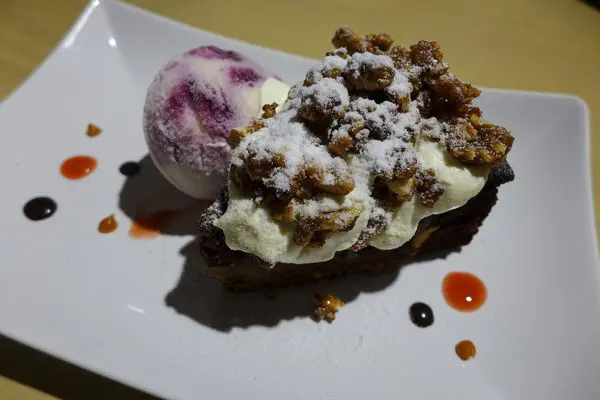 蛋糕體是巧克力派,上層鋪滿新鮮脆感的堅果和餅乾片,