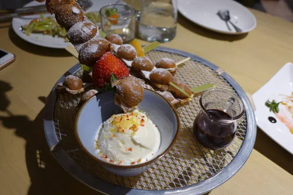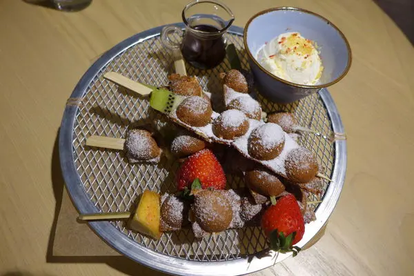 鎮店之寶的鮮果串燒雞蛋仔($280),菜單上還有特別註明建議2人以上分食。