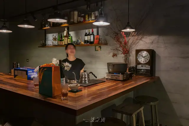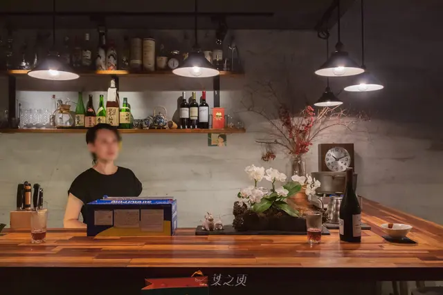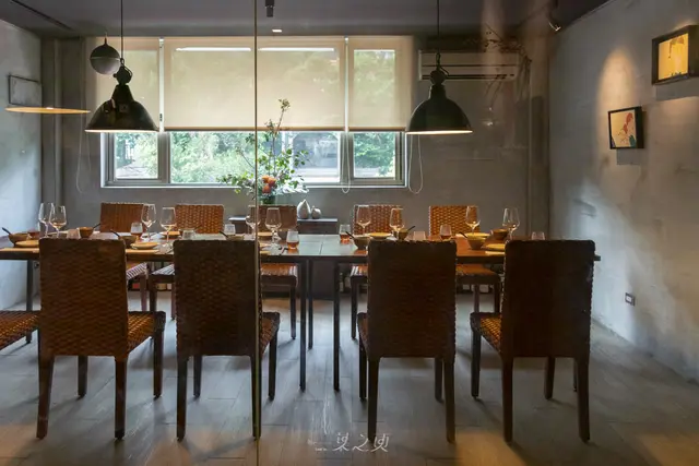 自己在士林、天母一帶生活已久,倒是真的從來不知道,原來離家這麼近的地方,有個如此雅致的空間,這麼適合好友聚餐,推開門、先進入眼簾的,是臉上堆滿笑容、親切地歡迎著來客的女主人小毛,小毛所在的吧檯工作區,灰色調的牆面搭配深木色的吧檯,和她的氣質一樣顯得穩重,讓人感到安心舒適。