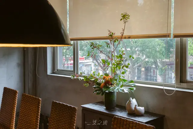 我特別喜歡當時窗邊擺設著的花藝作品、以及牆上掛著的畫作,這樣的大長桌、和看似隆重的擺設,難免多少會讓不熟悉的人有些拘束感;但窗邊透著陽光的植栽、和牆上帶著些中西合併、童趣感的畫作,都讓整個空間氣氛更加生動活潑。