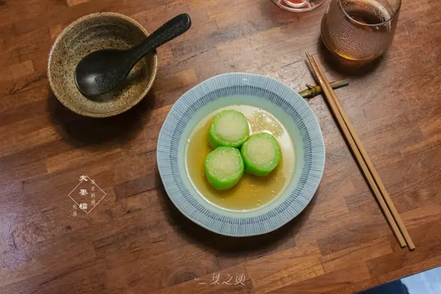 上桌時先竄入鼻腔的是蒜蓉的香氣,但在蒸過之後氣味不刺激反而圓潤。角瓜的原始甘味,在破布子汁和蒜蓉的襯托下,顯得更加甘美;角瓜保留著入口咀嚼時軟中帶脆的口感,即便是平常不喜絲瓜的軟爛口感的友人,同樣吃得嘖嘖稱奇。