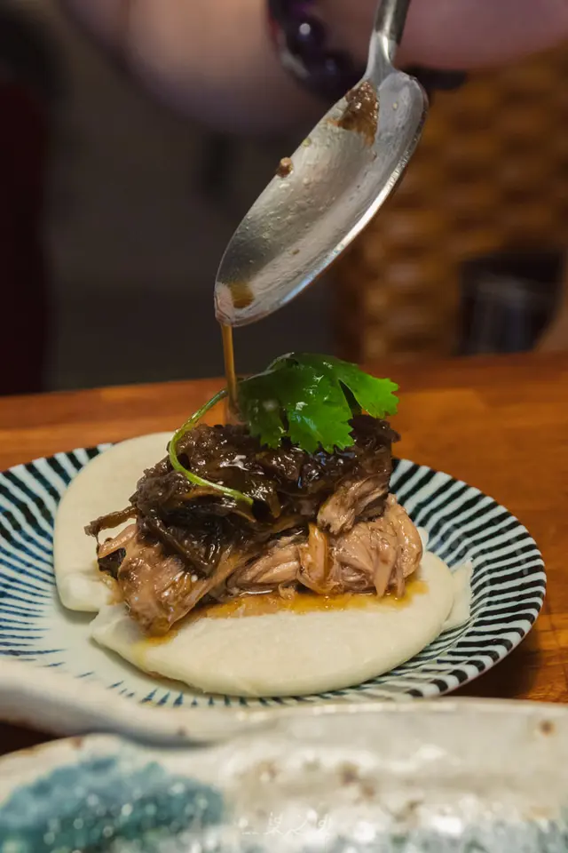 另外附上剛蒸好的刈包,刈包上盛上肋排肉和滿滿的梅干,鹹香氣在入口時滿溢,特別飽口滿足!