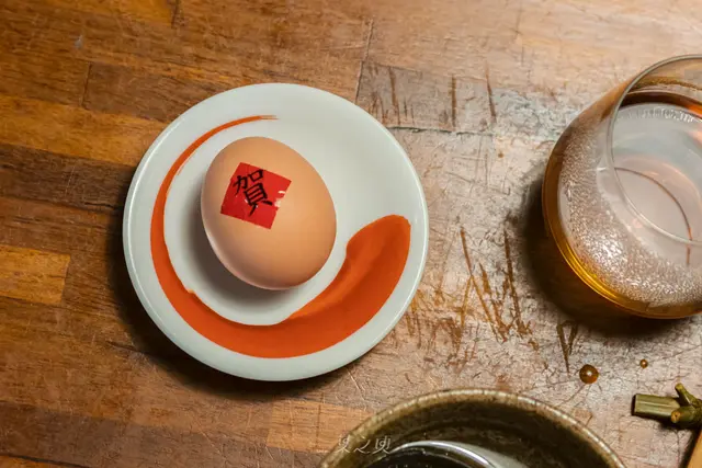 當天聚餐正好是一位同行有人生日,夫妻檔還特別準備了小小的祝賀禮,用紅色的籃子裝著水煮土雞蛋,蛋殼上貼著祝賀的吉祥字,可愛地傳達了祝福的心意。