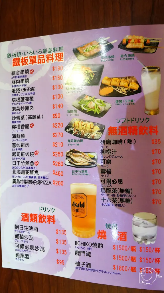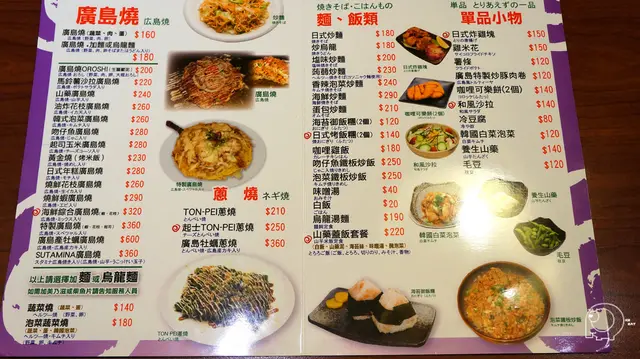這裏除了廣島燒之外還有、蔥燒(不知道是啥?)、炒麵、炒飯、小菜、其他鐵板料理等等