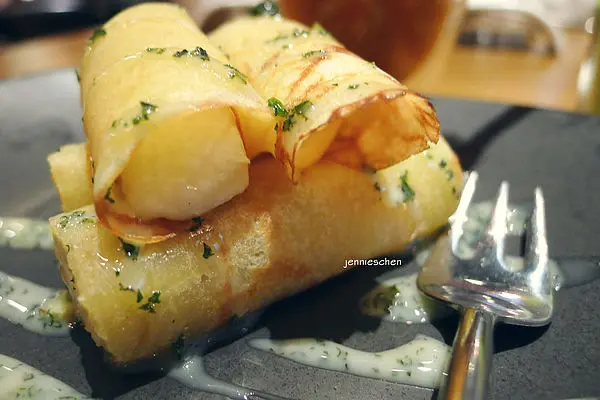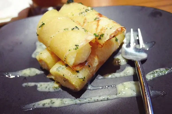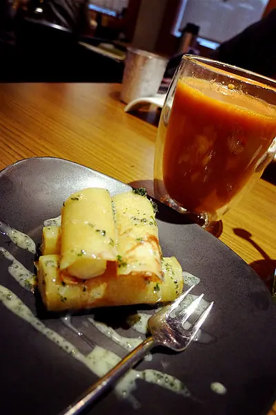 我好愛他們的附餐甜點喔!一直很喜歡現煎的甜點,薄薄的餅皮帶著一點焦香味道,包裹著香蕉的美味實在太誘人了!好吃極了!