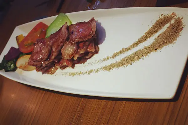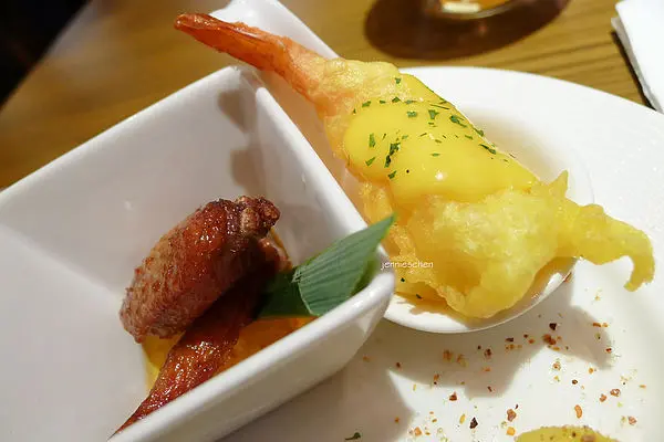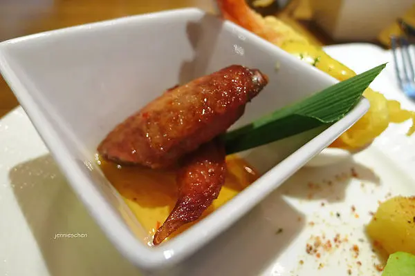 前菜是烤雞翅。這家餐廳從進來後服務一直都還不錯,印象很好!餐點也好吃。