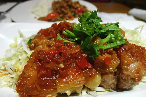 妹妹點的魚。我覺得泰板燒的醬料口感都好特別,怕吃辣的都可以吃唷!因為真的不太辣呀!