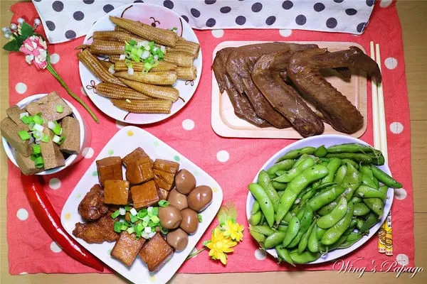 適合退冰直接食用的滷食,有「百頁」、「毛豆」、「鴨翅」、「玉米筍」,