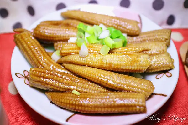 脆脆的玉米筍沾覆滷汁,吃來是清爽的甜香口感。