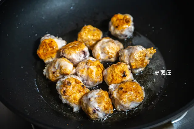 花枝丸需要先從冷凍庫拿出來解凍,帶解凍完畢之後,就可以熱油鍋開炸啦!!或是家裡有氣炸鍋的,也可以使用氣炸鍋唷~你看這花枝丸,肉眼就看的到花枝顆粒,炸的過程一直飄出香味,太逼人了!!我習慣用半煎炸的方式來料理,你們也可以依照自己習慣的模式來料理唷~