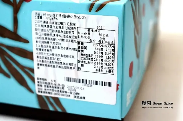 外箱上清楚標示出糖村蛋糕品嚐的美味秘訣,