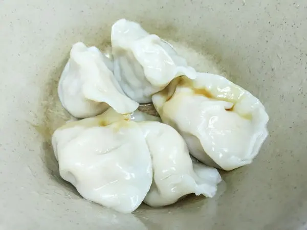 光吃牛肉麵有些空虛,隨便點了五顆水餃來當小菜,外觀就是很外省隨興包的那種,