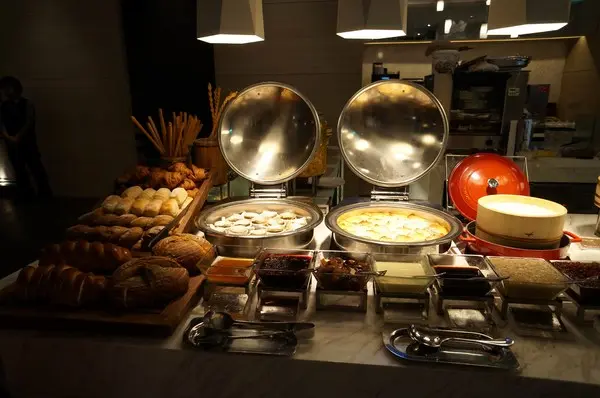 蛋糕最推薦乳酪蛋糕! 介於輕乳酪跟重乳酪間的濃度,綿密好吃,熱甜點有裝一些南瓜布丁,南瓜很甜,還有另一款蛋料理,但有點蛋腥味