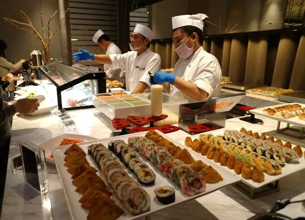 熱食區的旁邊就是生魚片區很小一塊,不過手卷 握壽司 生魚片應有盡有! 剛開始三位師傅忙著,最後變一位,辛苦了師傅們