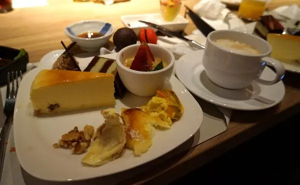 蛋糕最推薦乳酪蛋糕! 介於輕乳酪跟重乳酪間的濃度,綿密好吃,熱甜點有裝一些南瓜布丁,南瓜很甜,還有另一款蛋料理,但有點蛋腥味